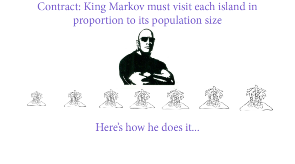 Flip a coin to generate a proposal for King Markov to move clockwise to the higher-numbered island, or counter-clockwise to the lower-numbered island