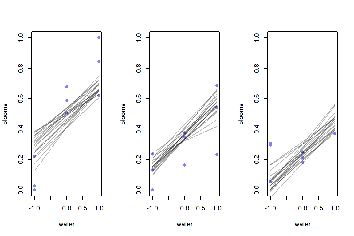 ## R code 8.12rugged.seq <-seq( from=-0.1 , to=1.1 , length.out=30 )# compute mu over samples, fixing cid=2 and then cid=1mu.NotAfrica <-link( m8.2 ,data=data.frame( cid=2 , rugged_std=rugged.seq ) )